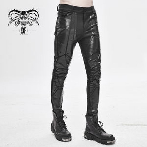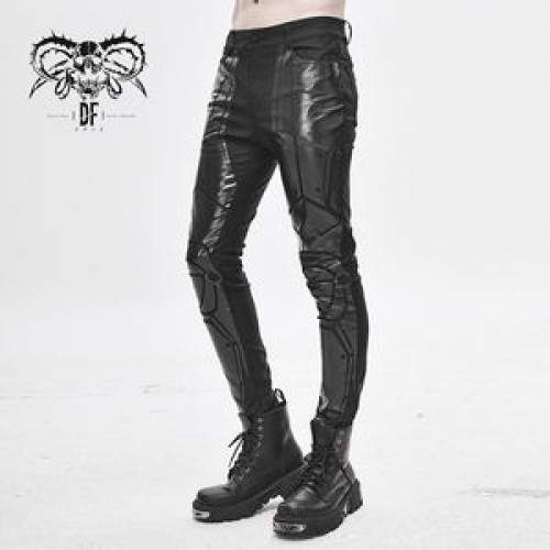 PT132 Devil fashion black cyber punk robot armor gloss printing stretchy men trousers
