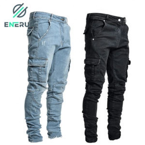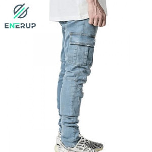 Enerup OEM/ODM Fashion Hombre Mujer Multi Pocket Casual Pencil Cotton Straight-leg Men's Trousers Pants Jeans