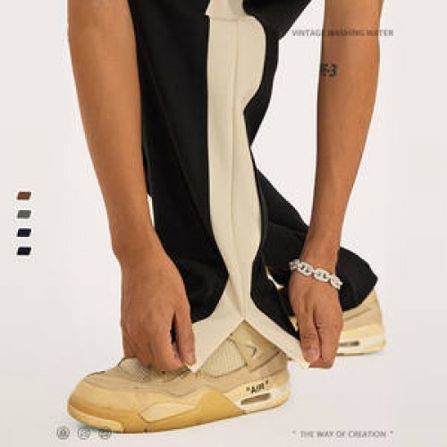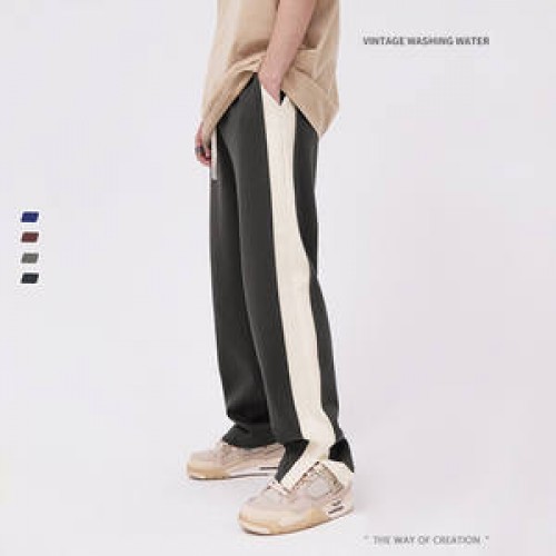2022 Spring and Summer Simple and Comfortable Side Stitching Split Casual Men's Pants for Teenagers Wide Leg Straight Pants