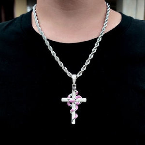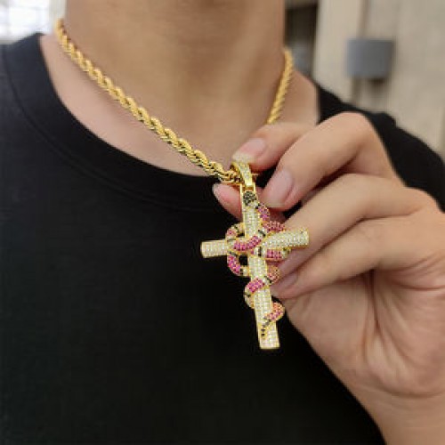 Jewelry Hip Hop Jewelry For Men Snake Cross Iced Out Ijesus Cross Pendant Necklace Men Snake Chain Cross Pendant