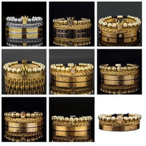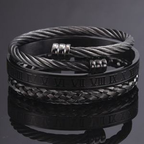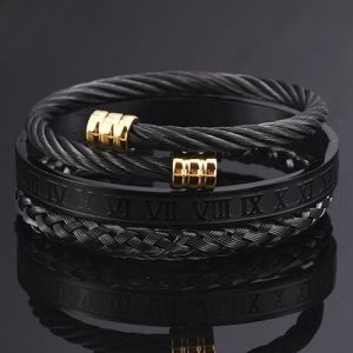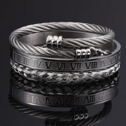 Hip hop 3pcs/set Royal Roman Love Bangle Stainless Steel Rectangle Bracelet For Men's Jewelry