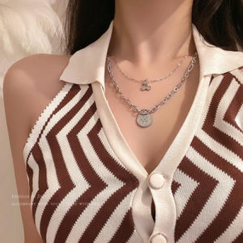 New Irregular Colorful Hollow out Love Pendant Double layer Chain Pearl Metal Necklace for Women Men Punk Trendy Y2K Jewelry