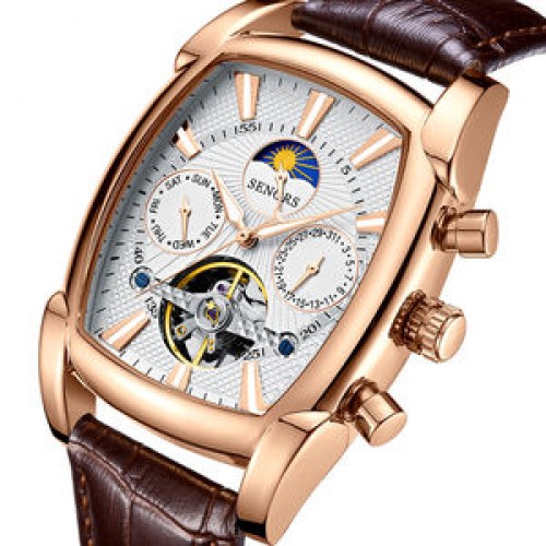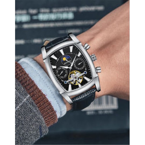 Business Stainless Steel Visible Case Back Men Watches Mechanical Moon Phase Automatic Mechanical Wristwatches For Men