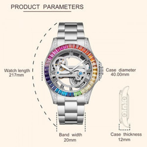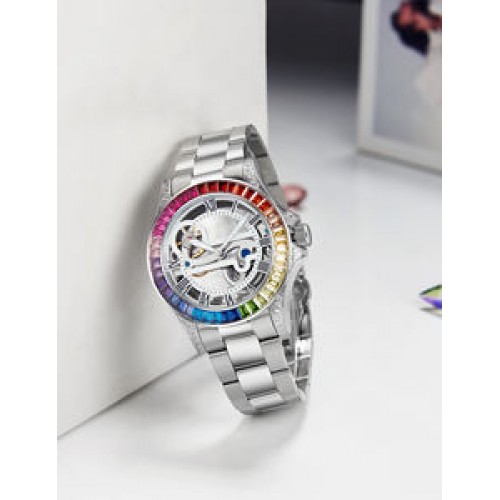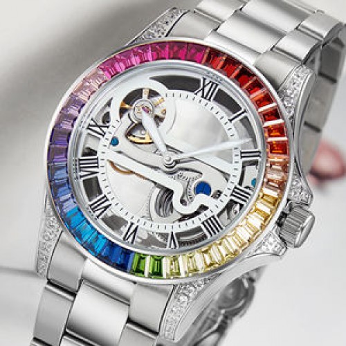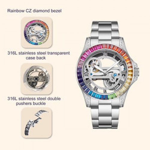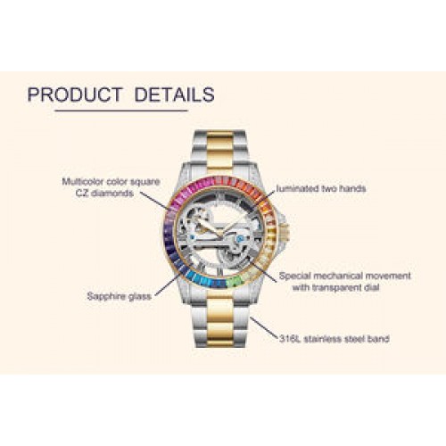 Watches Davena 61609 Luxury Watches Men Automatic Stainless Steel CZ Diamond Multicolor Luxury Watches Men Automatic