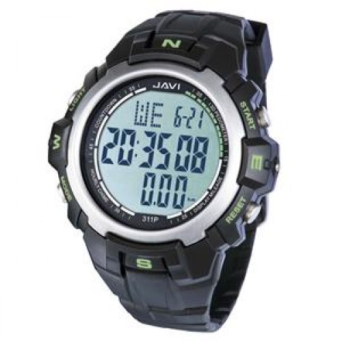 Time, Date, Week Daily Alarm Stopwatch (1/100 second start/stop) EL Back light,Chime 12/24 Hour format Time accuracy: +/- 45 Seconds per Month | ||