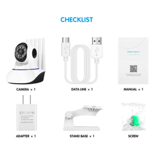 Packing List:Camera*1 User Manual*1 Power Adapter*1 Micro USB Power Cable*1 Bracket*1 Screw*2 Box DIM.165*150*122mm