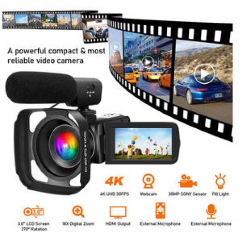 Full HD 4K, 2.7K, 1080P 30FPS and 56MP and 18X digital zoom and 3.0 inch IPS touch screen, 270° rotatable;