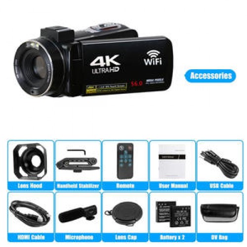 4K camcorder 56MP HD digital camera Wifi with microphone touch screen HD4KS-56M
