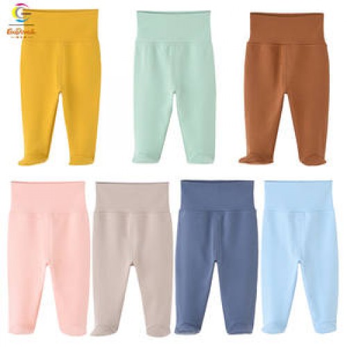 Plain baby pants stretchy cotton baby trousers with footie high waist infant pants