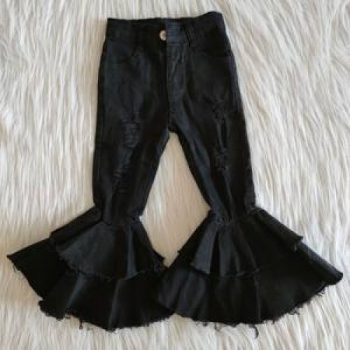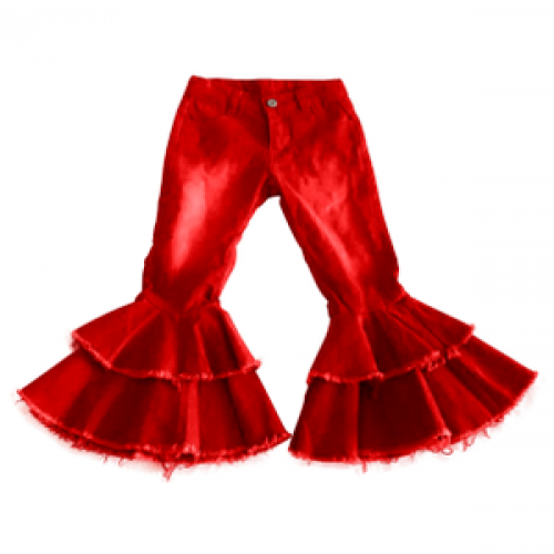 Fashion Baby Girls Casual Jeans Trousers Baby Toddler Denim Pants Kids Children Kids Bell-Bottoms Pants Wide Leg Ruffle Denims