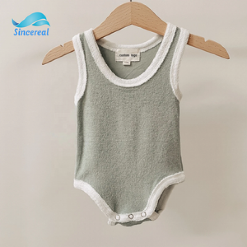 Summer custom baby girls&boys crawl clothes terry towel sleeveless cotton solid color playsuits towel romper