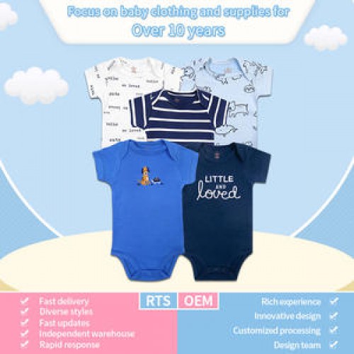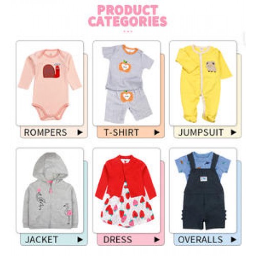 Each batch of 5 sets, each set contains 5 different styles of baby clothing.