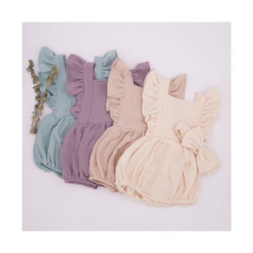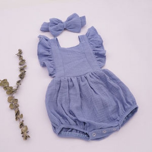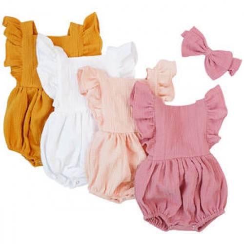 Newborn Organic Cotton Butterfly Short Sleeve New Multiple Colour Cute Casual Loose Baby Rompers With Bow Bandana