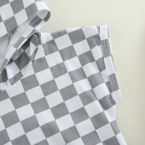 Keywords | Checkerboard Print Short Sleeve Hooded Bottom Jumpsuit |