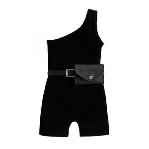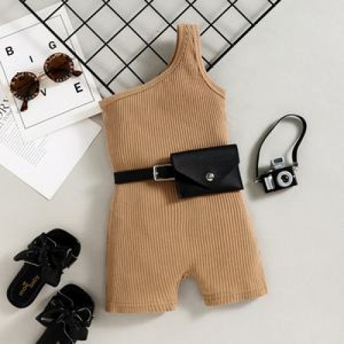Toddler Baby Girl One Shoulder Romper Summer Oblique Shoulder Sleeveless Knitted Jumpsuit with Belt Children Clothes Playsuit