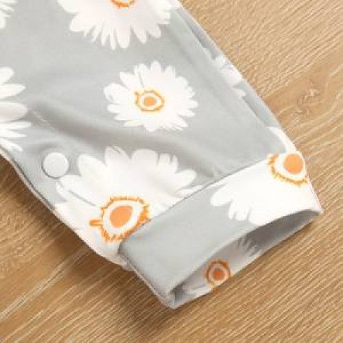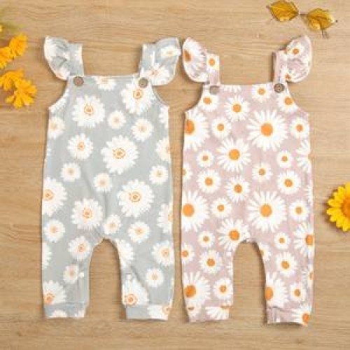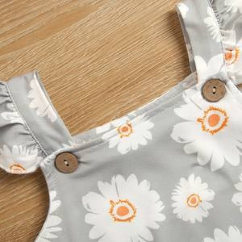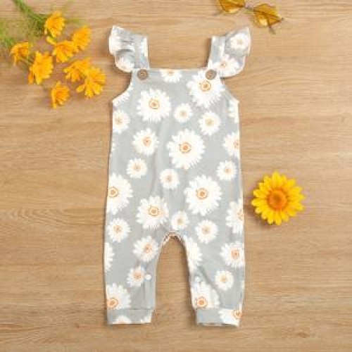 2022 Private Label Toddler Girl Summer Long Playsuit Cute Daisy Sunflower Print Flying Sleeves Baby Romper Bodysuit