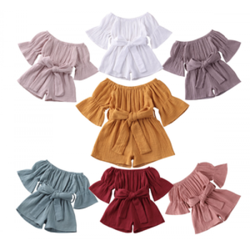 MIOZING Infant Baby Girls Rompers Overalls 7 Colors Flare Sleeve Solid Jumpsuits Clothes