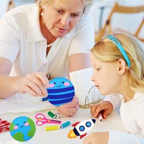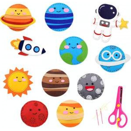 Premium Amazon hot sale kids arts and crafts educational toy first to learn sewing craft outer space planet DIY felt sewing kit