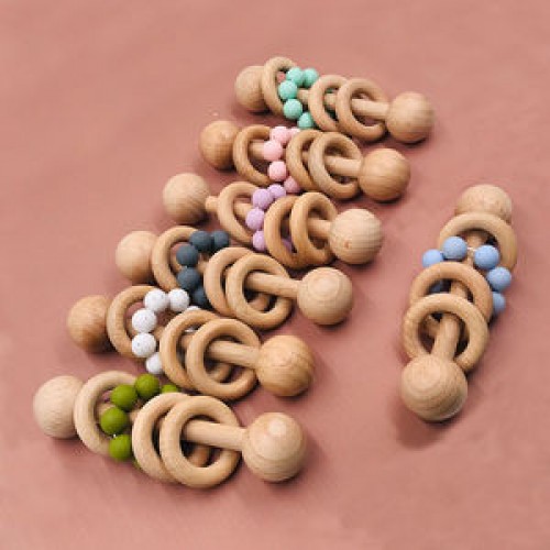 Baby Toys Organic Wood Montessori Styled Baby Rattle Grasping Teething Toy for Toddlers Natural Toys