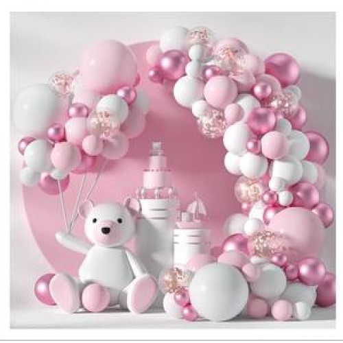 wholesale 107pcs Pink white gold metallic Latex Balloon Garland Party Decoration Ballon Balloon Arch Kit Set