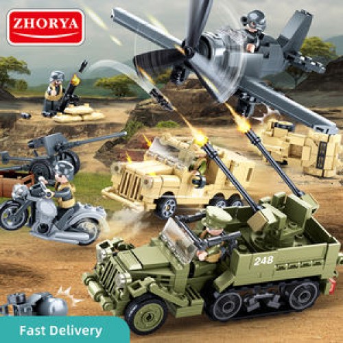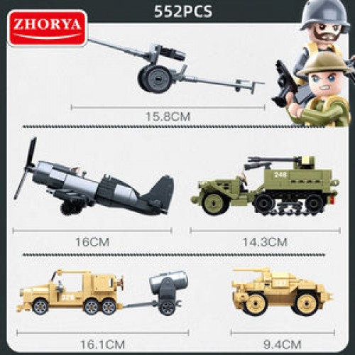 Model Toy Building Block Zhorya Sluban 552pcs World War II Model Set Toy Military Vehicles Army Assembly Building Block Set Toy
