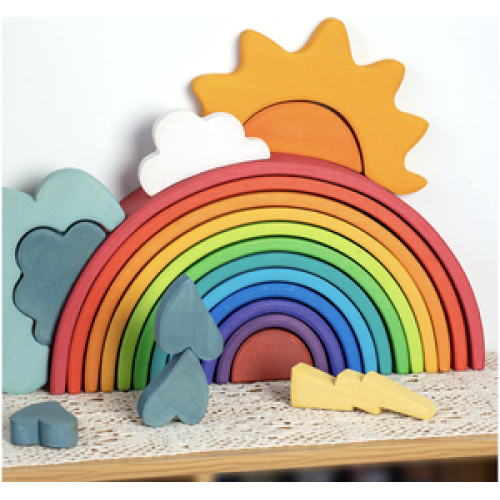 12pcs Wooden Rainbow Blocks Stacking Toy Large Rainbow Building Blocks Wooden Toys for kids Montessori Educational Toys