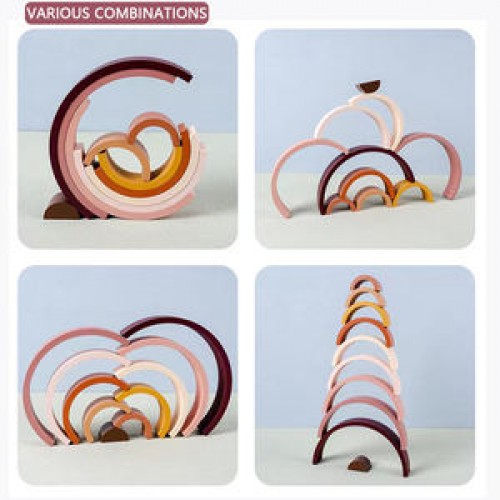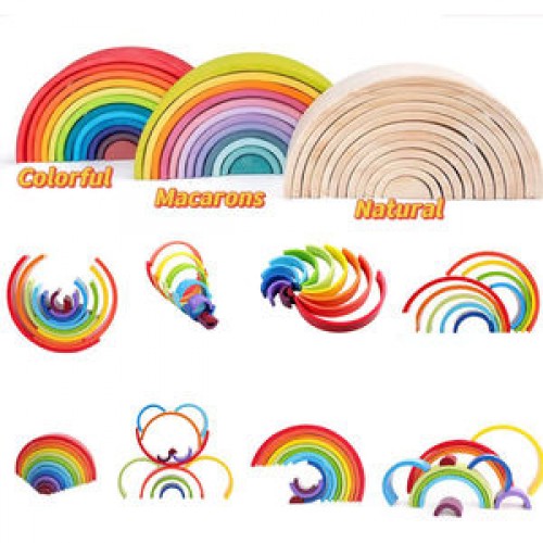 This will be great for creativity, imagination, pretend play, and color/size/comparison recognition. Rainbow arches can be pretend as bridge, tunnels, bikes, beds for little dolls... let your imagination free. Can also play with Lewo rainbow peg dolls for more fun.