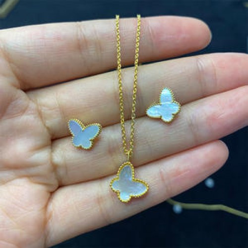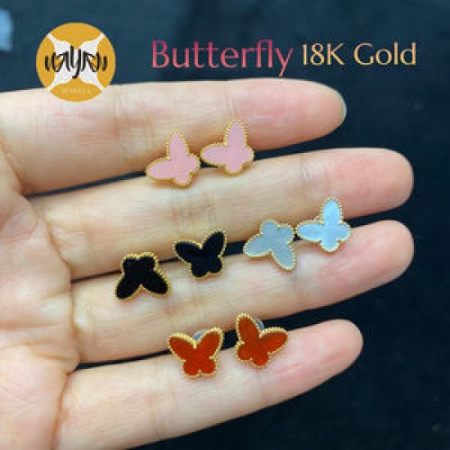 18k Real Gold Butterfly Necklace Pure Au750 Gold Pendant and Stud Earrings Wholesale Gold Jewelry