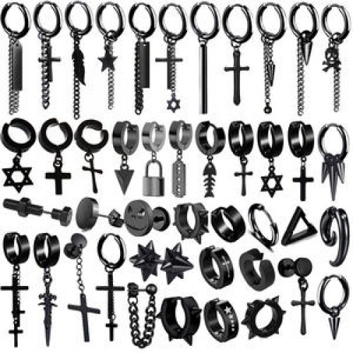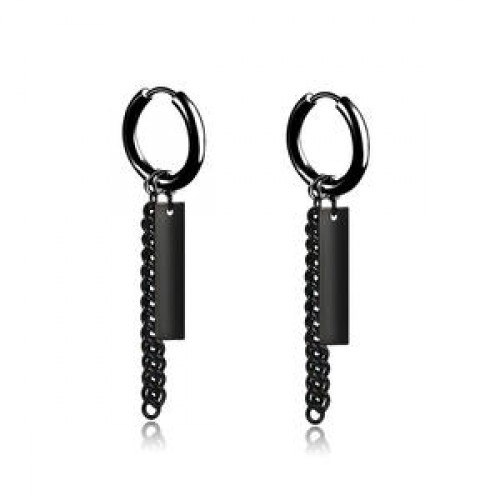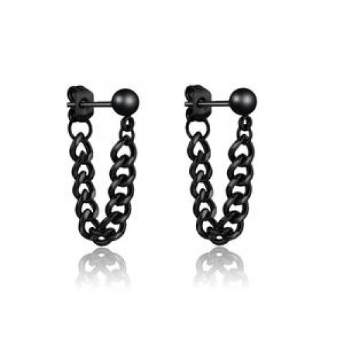 1 Pair Stainless Steel Ear Stud Chain Ear Clip Dangle Piercing Jewelry Punk Halloween Gothic Cross Black Earrings For Men Women
