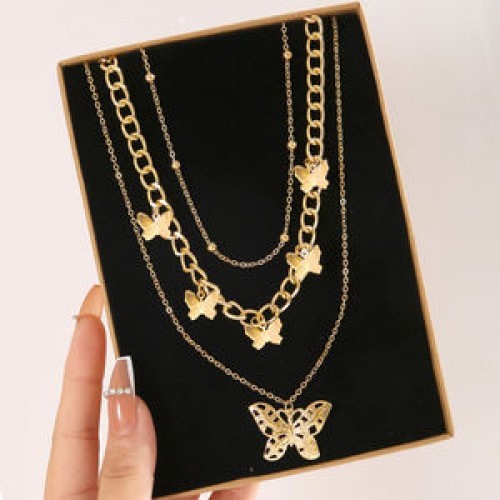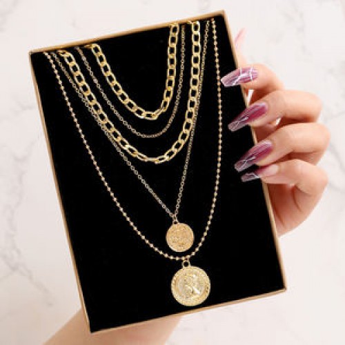 17KM Vintage Gold Multilayered Coin Chain Necklace For Women Men Punk Butterfly Chunky Chain Necklace Party Trendy Jewelry