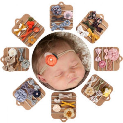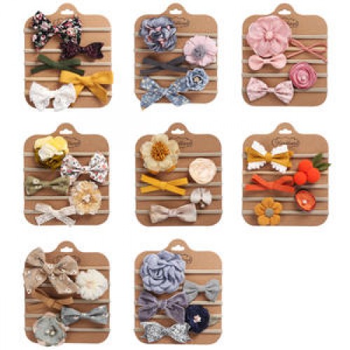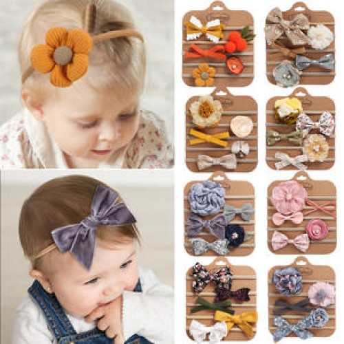 5pcs/set New Hair Bows Elastic Kids Hairbands Cute Velvet Chiffon Headbands Baby Girls Headbands Set