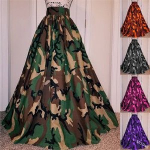 2022 Camouflage Plus Size Floor-Length Skirts Women Printed A Line Skirts Girls High Waist Long Skirts