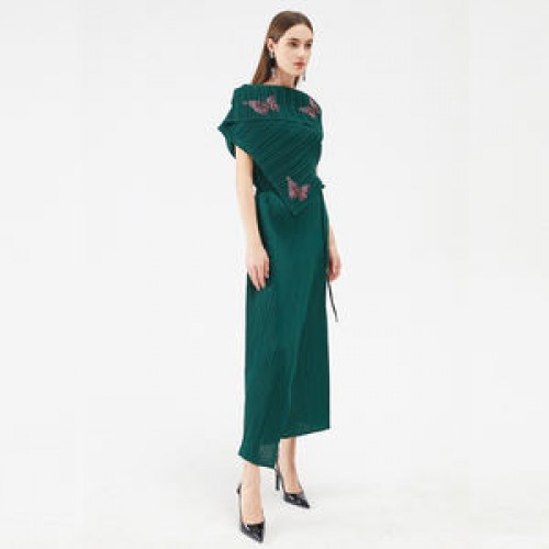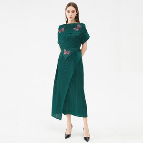 2021 best quality customized style pleated skirt casual personality diamond-studded butterfly dress Casual Dresses free size