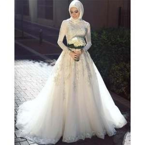 | Product Name | Modest custom white arab lace decals muslim bridal gown long sleeve muslim hijab wedding dress |