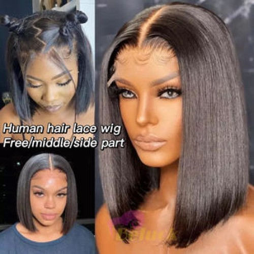 180% Bleached Knots HD Lace Frontal Wig,13x4 Short Wig Brazilian Human Hair Wig,100% Bob Wig Human Hair Lace Front Brazilian