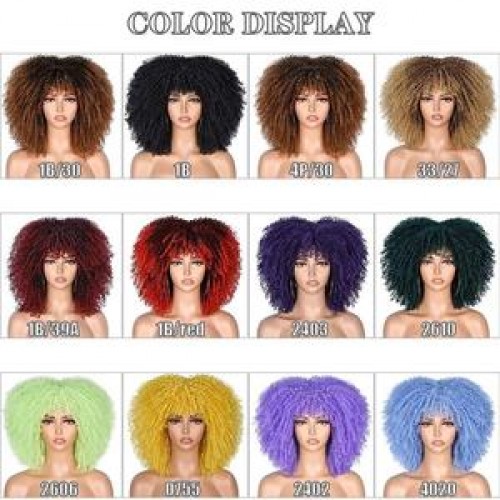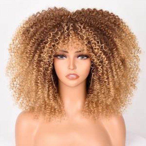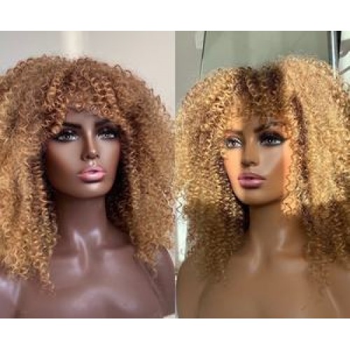 $5 sample Wigs Afro kinky curly ombre blonde wigs with bangs for black women 16 inches heat resistant synthetic wig