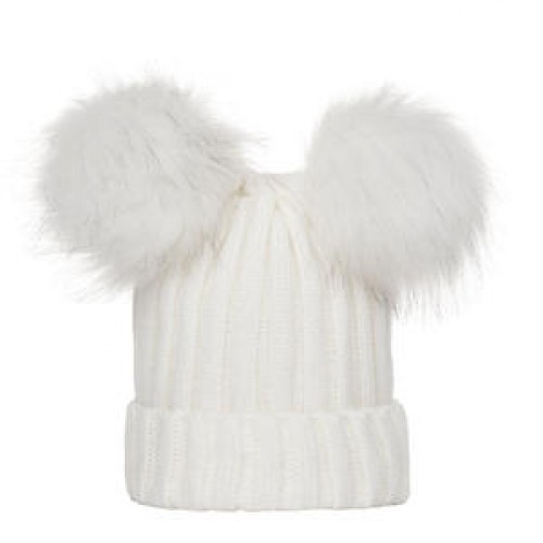 Cute lady Beanies caps Crochet Warm Knit Fur Ball Hats Kids Removable Pom Winter Hat
