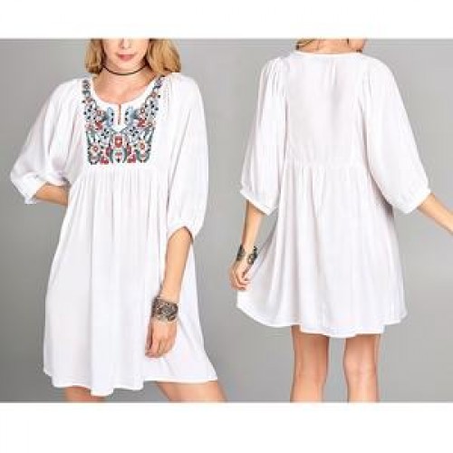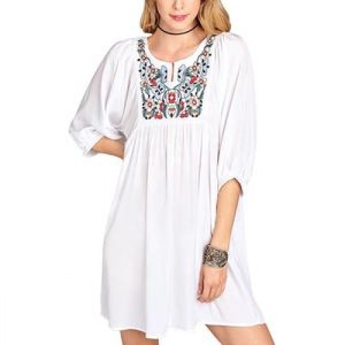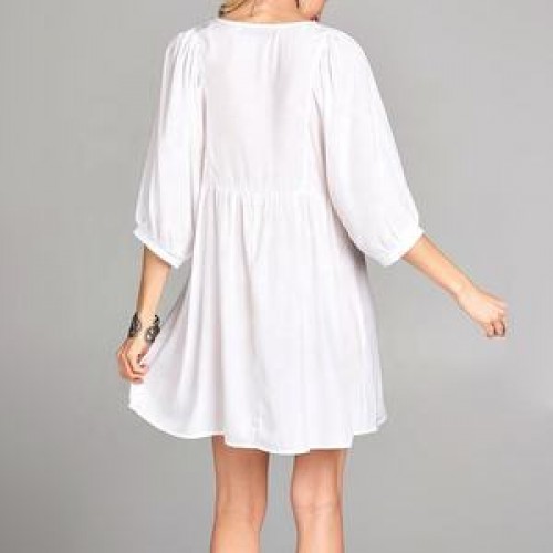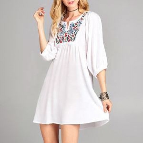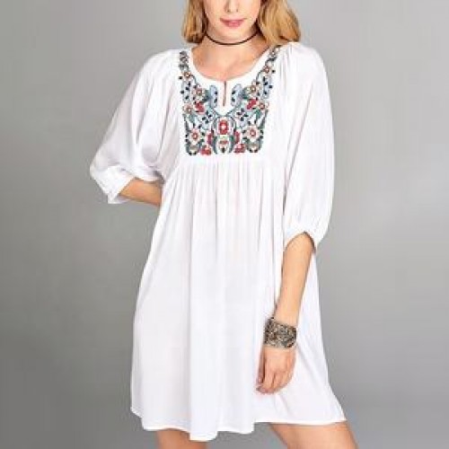 Blouses Women OEM 3/4 Sleeve White Blouses Midi Elegant Women Dress Cotton Floral Embroidery Tunic Blouses