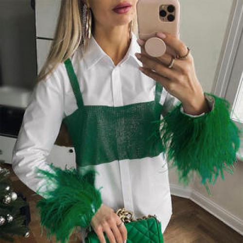 2022 Bettergirl Hot Sale Breathable Fashion Clothes Office Lady White Blouse Feather Long Sleeve Tops Women's Blouse & Shirts